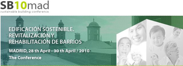 El Consejo para la Construcción Sostenible en España, GBC, organiza en Madrid los próximos 28, 29 y 30 de abril de 2010 el Congreso Regional Internacional Sustainable Building 2010, SB10mad, con el lema «Construcción, revitalización y rehabilitación sostenible de barrios: una escala urgente e imprescindible» , evento que se enmarca dentro de las actividades preparatorias del Congreso Mundial sobre Sostenibilidad en la Edificación, SB2011 Helsinki, y que se articulará según cuarto áreas temáticas: