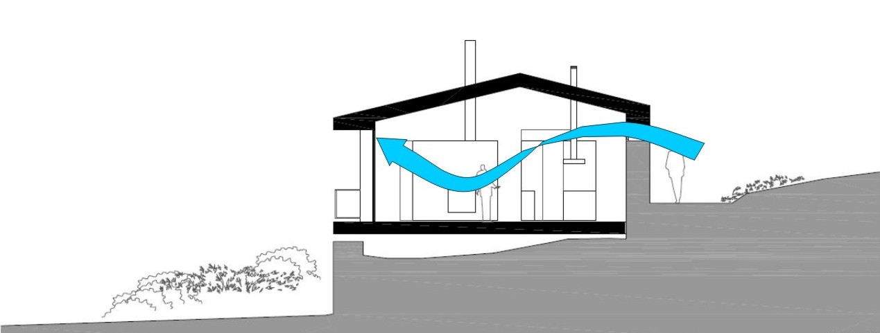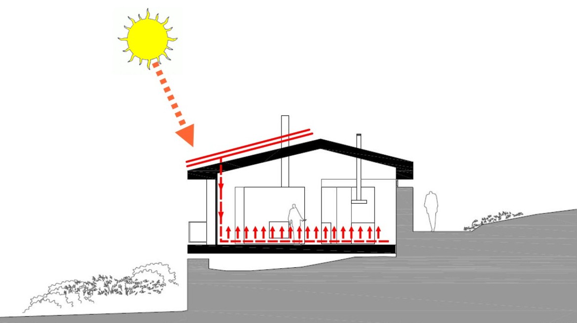 Otros aspectos de la arquitectura popular de la zona adoptados es la cubierta ventilada y captadora, la recuperación del “sobrao” y el “hogar” central (chimenea recuperadora de calor), la ventilación cruzada y los grandes huecos captores al sur con embocadura con posibilidad de control de entrada de radiación.