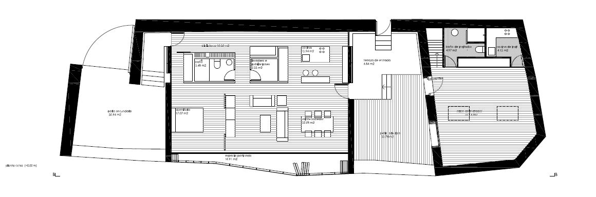 Como ya hemos hablado varias veces, el método para proyectar que seguimos en el estudio FARFANESTELLA se basa analizar la arquitectura tradicional preexistente en la zona y las soluciones que, por adaptación al entorno, han ido transformándola. De este análisis, sumado al estudio de las condiciones climáticas concretas de la zona y las necesidades del cliente, surge en este caso de vivienda unifamiliar en Fariza un volumen sencillo y compacto que situamos exento, elevado sobre la piedra y los muros de lajas de granito acuñado (cortinas) sin tocarlos, para diferenciar la actuación y que el impacto sobre el lugar sea mínimo.
