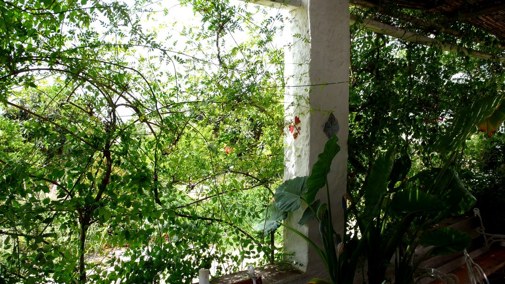El porche es una prolongación de la casa, como pueden ser los soportales o los pórticos en otros climas, pero en este caso tiene una clara función refrigerante; mediante la proyección de sombra sobre la fachada con más incidencia de radiación solar y gracias a la evaporación de las paredes vegetales de hoja caduca que cubren este dispositivo.