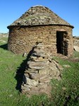 ¿Qué tal? Te envío algunas imágenes del chozo del que te hablé a través de los comentarios de vuestro blog Bioclimática tradicional. Lo encontré por casualidad, al poco de salir de Alcántara hacia Garrovillas. Yo creo que todavía debe encontrarse en el término municipal de Alcántara. Como se aprecia en alguna foto, en las cercanías había muchas otras construcciones parecidas. Supongo que el óculo tendría la finalidad práctica de evacuar el humo que se generaba si se encendía lumbre dentro.