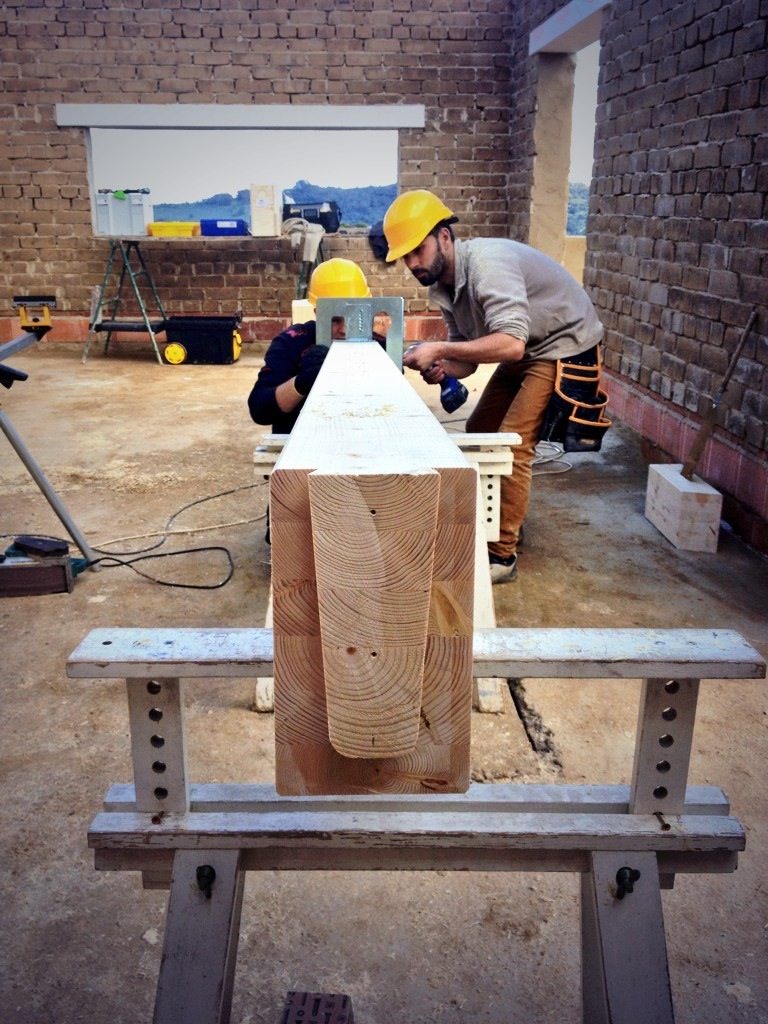 Estructuras de madera y tableros de madera reciclada.